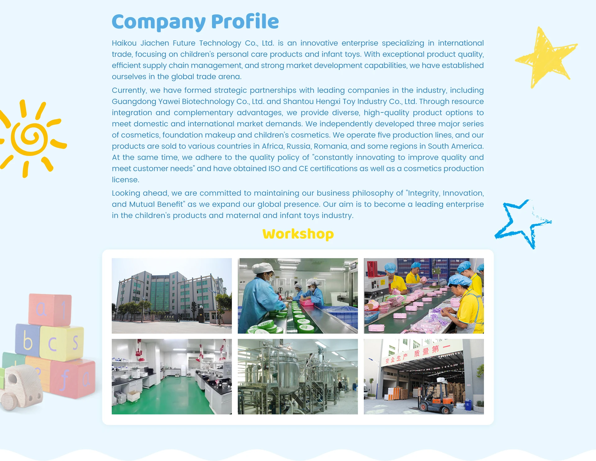 Productos principales:Juguetes de maquillaje, juguetes de peluche, accesorios para niños